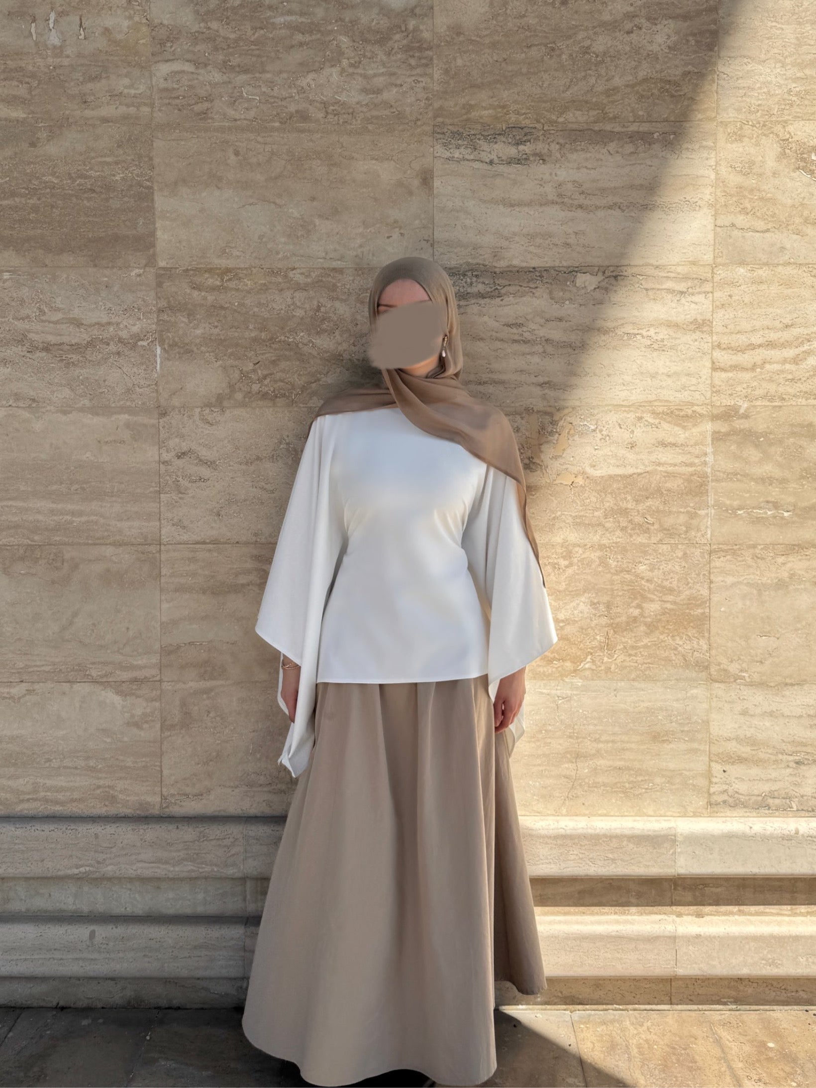 The Butterfly Top features a draped, flowy silhouette crafted from stretchy fabric for all-day comfort. Elegant yet effortless, it’s designed with adjustable back ties to cinch the waist for a flattering fit.