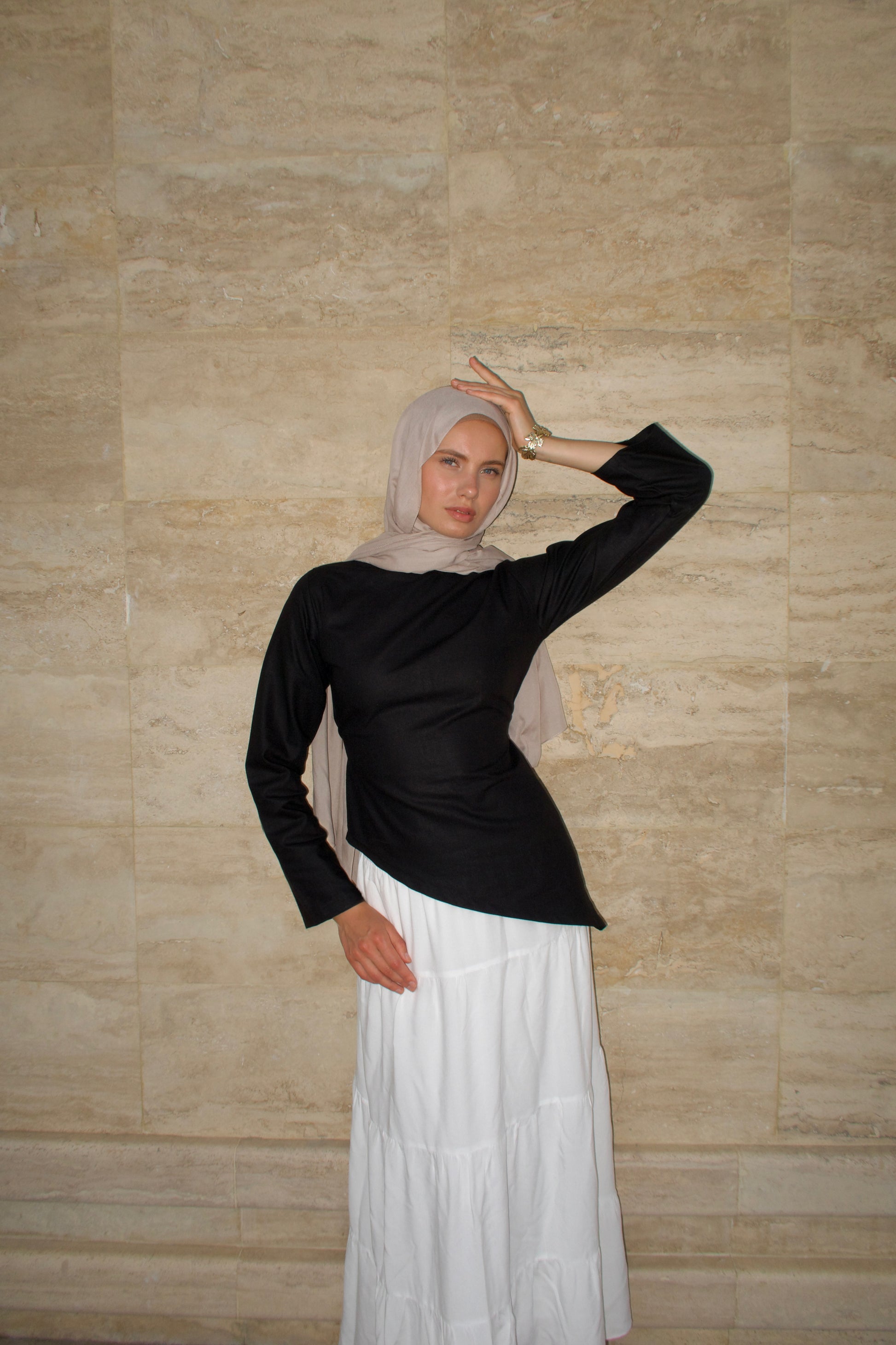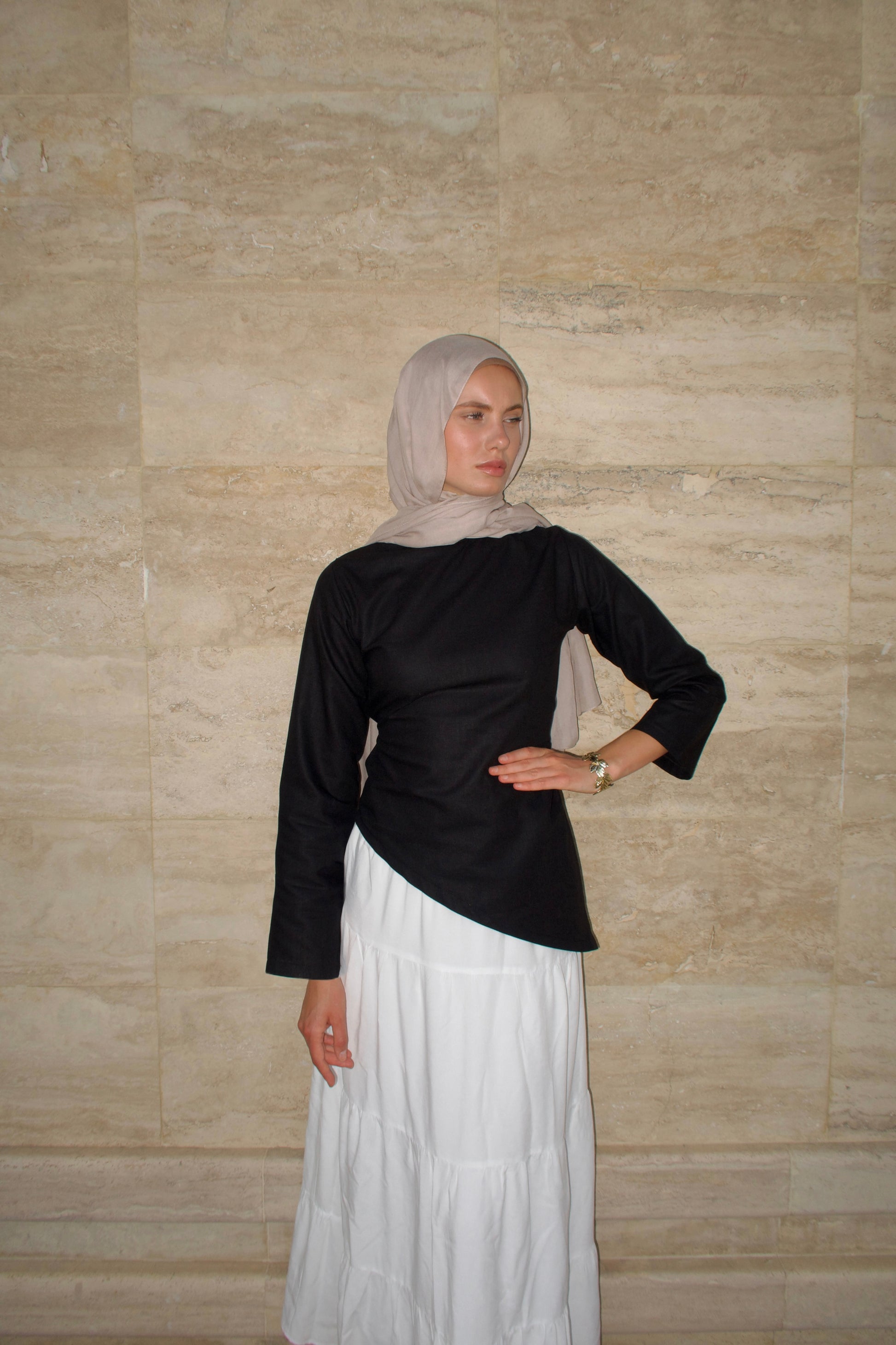 Linen top with a clean silhouette and a back belt to adjust the waist. Lightweight, structured, and effortlessly refined.